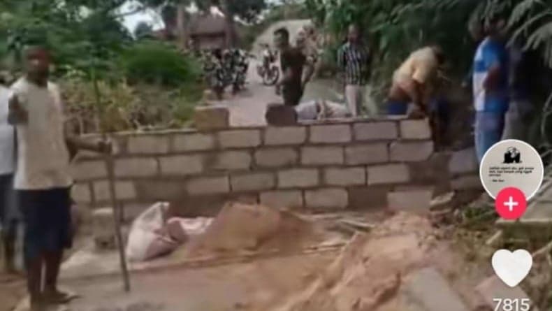 Video viral ini diunggah di akun Tiktok @statusbaper21 yang menayangkan saat beberapa orang sedang memuat tembok dengan susunan batako di jalan umum.