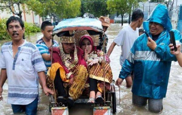 “Bertepatan ada pesta dan banjir di dalam kota. Pengantin diantar naik becak ke rumah mempelai pria,” ujar Aiptu Usman, saat dikonfirmasi. Kamis (12/6/2025).