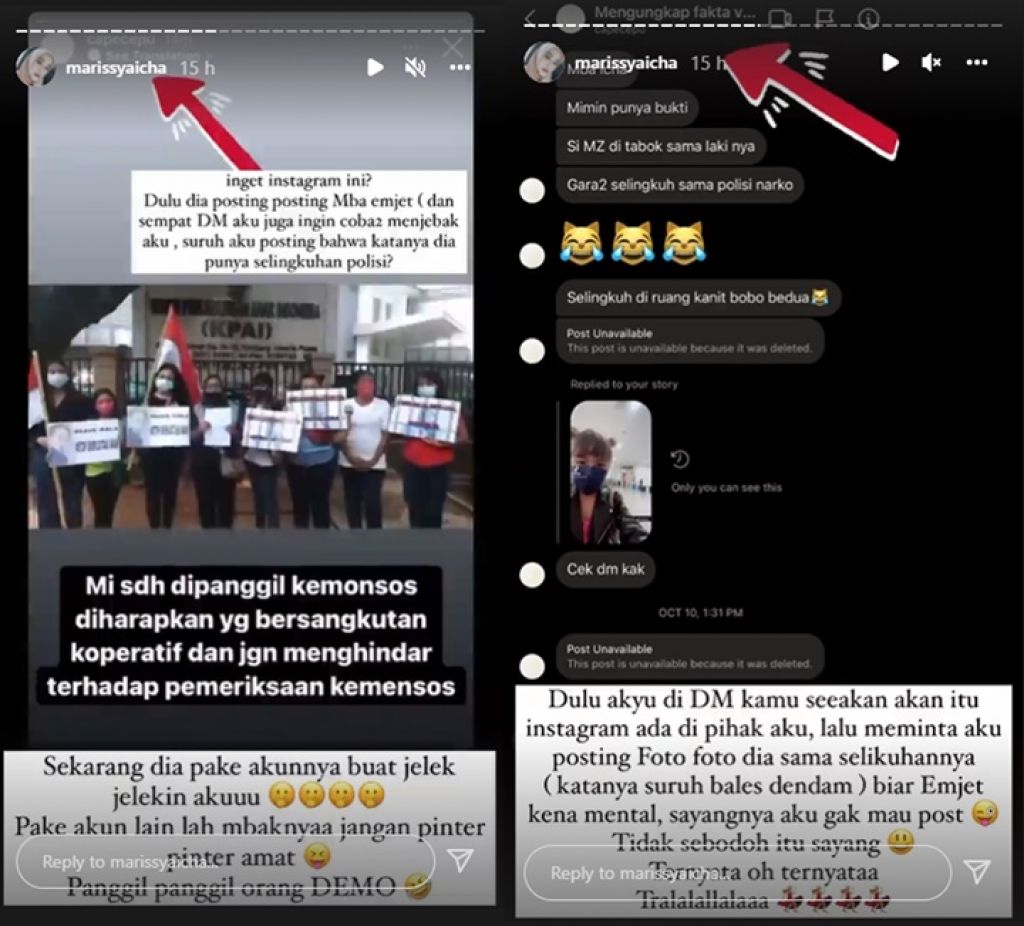 "Inget Instagram ini? Dulu dia posting-posting Mbak emjet dan sempat DM aku juga ingin coba2 menjebak aku, suruh aku posting bahwa katanya dia punya selingkuhan polisi?" beber Marissya, Rabu (5/1/2022).