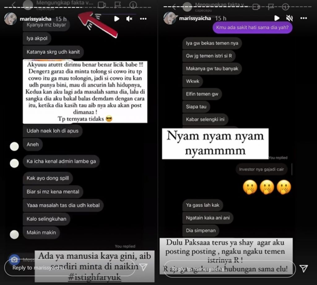 Bahkan, Marissya juga menduga bahwa ternyata pemilik akun tersebut adalah Medina sendiri yang turun tangan untuk menjebaknya dan meminta menaikkan isunya demi panjat sosial berkedok akun bodong.