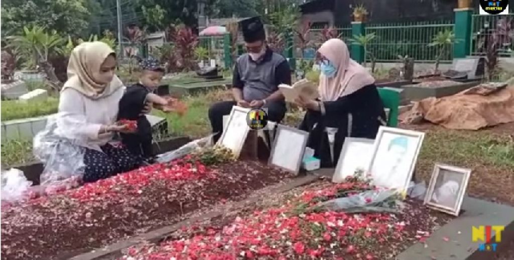 Saat tiba di pusaran kedua orang tuanya, Gala Sky lantas melihat foto kedua orang tuanya. Si kecil berseloroh \'mamih\' dengan nada yang lirih.