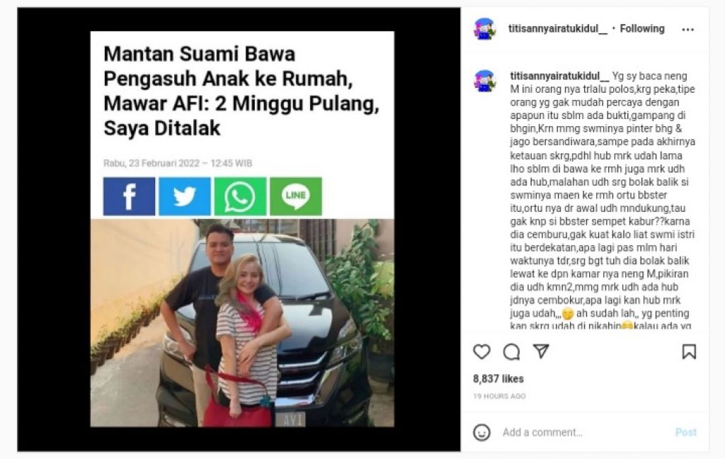 Sosok ini Sebut Istri Baru Mantan Suami Mawar AFI Gak Bawa Hoki: Nikah Hitungan Hari, Langsung Dicopot Jabatan!