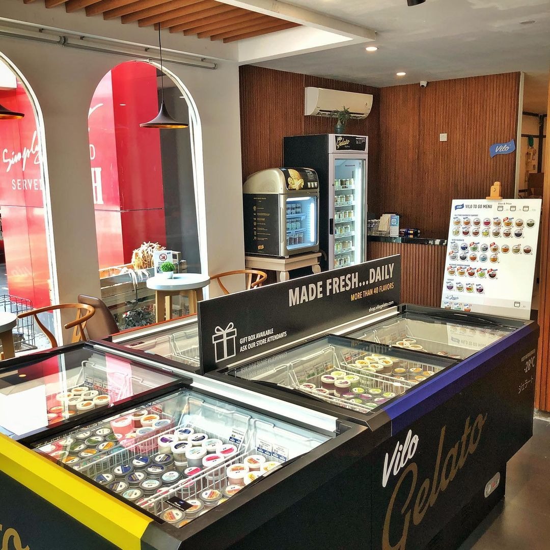 Beberapa rasa unik yang bisa kamu coba di Vilo Gelato di antaranya Mango Strawberry Sorbet, Nastar, Soy & Coffee, Bourbon & Brownies, Martabak, Choco Mint, Cotton Candy, Unicorn Magic, Cheetos, dan masih banyak lagi. Gerai offline- nya pun tersebar di banyak daerah di Jabodetabek, mulai dari Bogor, Alam Sutera, Senopati, Gunawarman, Toman, dan 5 daerah lain. Kamu bisa membelinya mulai dari harga Rp75 ribu!