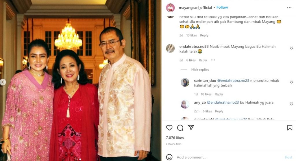 Unggahan Mayangsari itu pun sontak dibanjiri beragam pujian dari warganet. Mereka memuji Mayangsari yang kini bisa akrab dengan keluarga Bambang Trihatmodjo.
