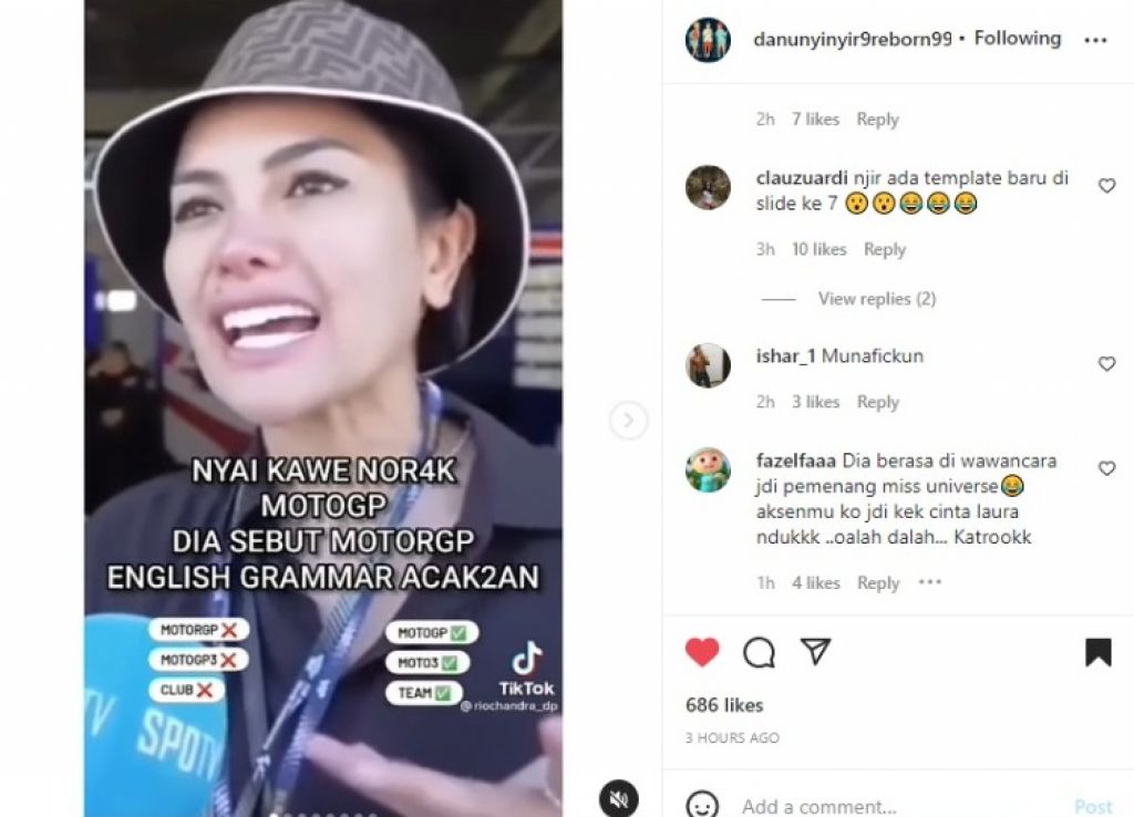 Bukan hanya MotoGp yang disebutnya MotorGP, Nikita Mirzani juga salah mengucap kata Moto3 yang disebutnya MotoGp3.