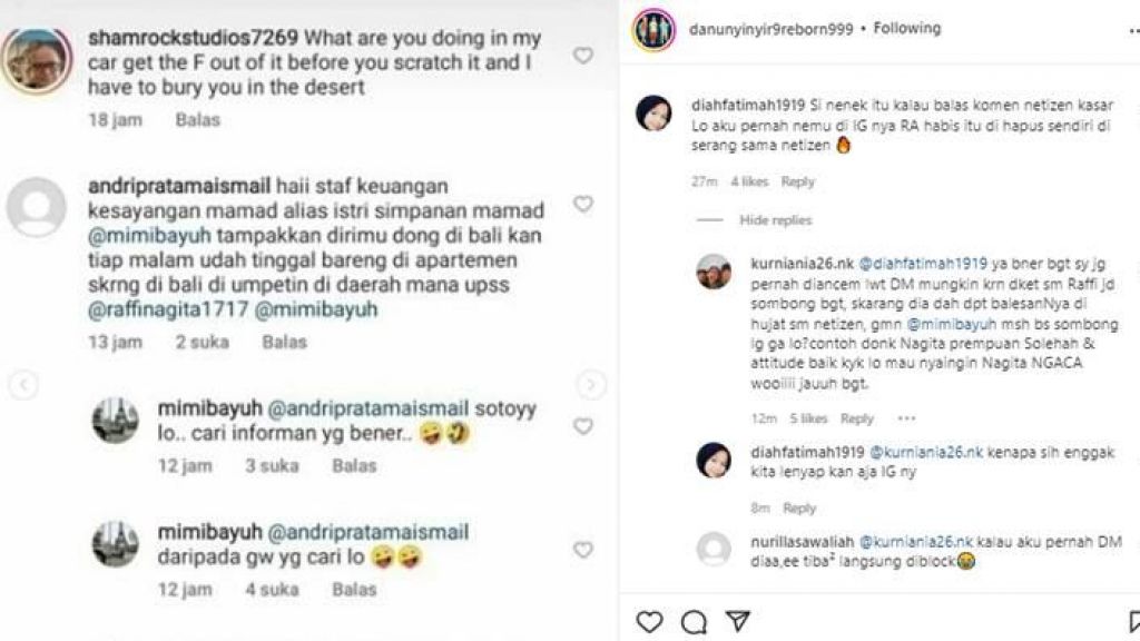 Meski sang Sultan Andara telah memberikan klarifikasi terkait rumor tersebut, netizen yang percaya Raffi Ahmad main serong di belakang Nagita Slavina pun masih memberikan komentar pedas dalam Instagram Mimi Bayuh.