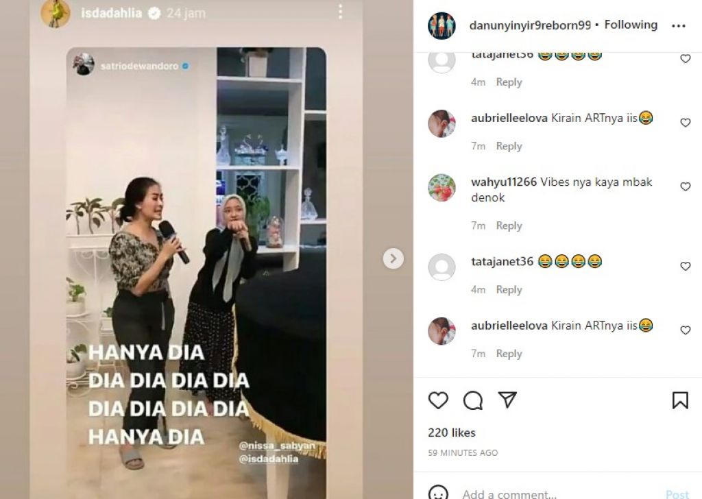 "Kirain ART nya iis," komentar warganet. "Auranya redup," timpal warganet lainnya. "Wajah nya kok kusem si N si pelakor kok auranya burik sekarang," sambung yang lainnya