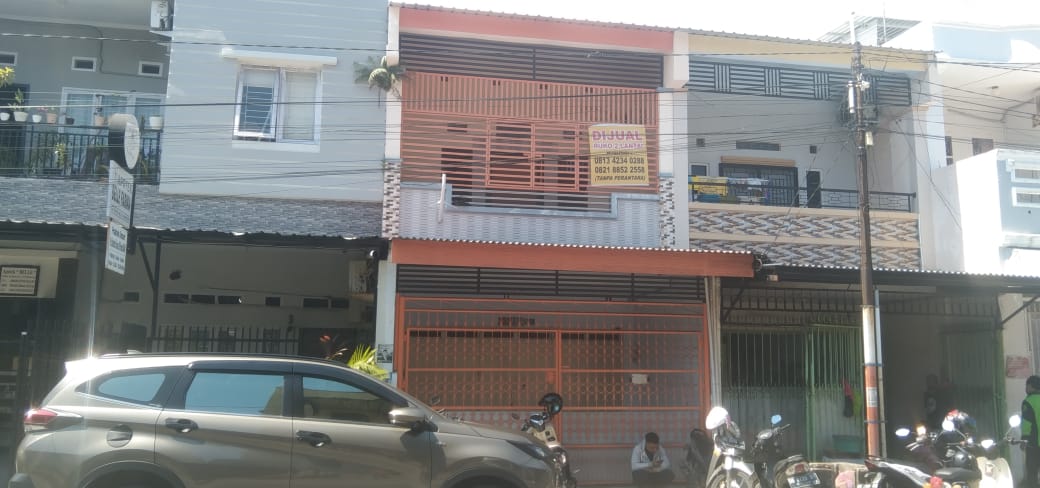Gudang yang diduga tempat meracik Kosmetik merek SS Glowup. Nampak dari luar ruko tersebut kosong dan dibagian atas ada tulisan \'Dijual Ruko 2 Lantai\'. Ruko ini terletak di jl. Serigala, Makassar, Jumat (16/06/2023) - Foto : iNewsCelebes.id/ Muh. Riswan