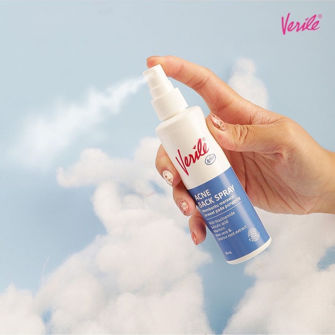 Mengandung kombinasi deretan kandungan seperti salicylic acid, allantoin hingga niacinamide yang efektif bantu redakan jerawat di punggung, Verile Acne Body Spray juga dilengkapi dengan aloe vera yang akan bantu menenangkan kulit dengan jerawat yang meradang.