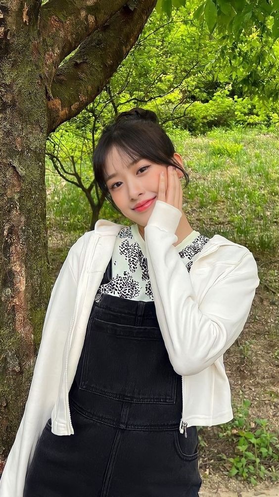 Kalau kamu punya basic cardigan favorit, kamu bisa menyontek gaya outfit Yujin yang simpel ini dengan mengombinasikannya bersama kaos putih serta celana denim