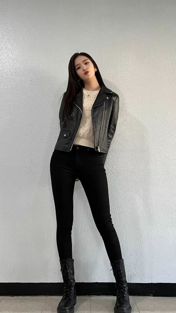 Sebagai salah satu unisex fashion item , leather jacket bisa kamu padukan dengan knit sweater , celana denim, serta boots untuk berikan kesan edgy seperti penampilan Ahn Yu-jin satu ini