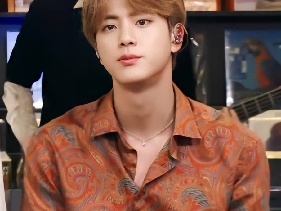 Jin BTS - Tampil di video live music di kanal Youtube Tiny Desk , Jin tampil memesona dengan kemeja batik warna merah bata