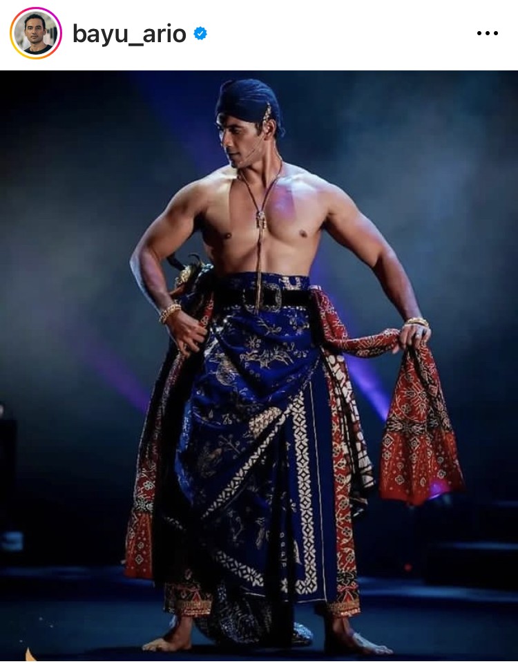 Aktor berusia 38 tahun itu juga terlihat mengenakan aksesoris berupa kalung panjang dan gelang berwarna emas di kedua tangannya. Menariknya, dalam potret tersebut, Ario tampak seperti melakukan gerakan tarian tradisional sambil memegang kain batik yang dia kenakan, sehingga tubuh kekarnya kian terekspos.