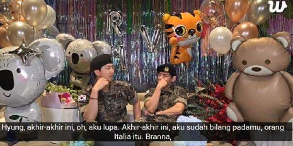 "Saya berada di tempat tidur di sekolah lama, jadi kami selalu tidur bersama dalam situasi yang sama. Kita cari tau apa yang populer? Anak-anak mengirimi ku sesuatu setiap hari. Hyung aku sudah bilang padamu orang italia itu, tung tung tung sahur," ujarnya