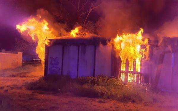 Api menelan sekitar 12 kontainer di tepi sebuah kompleks apartemen sebelum padam pada Kamis pagi, Czech TV melaporkan.