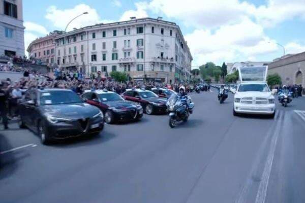 Mobil jenazah melaju pada kecepatan 10 km per jam melintasi jalanan Roma hingga sampai tujuan.