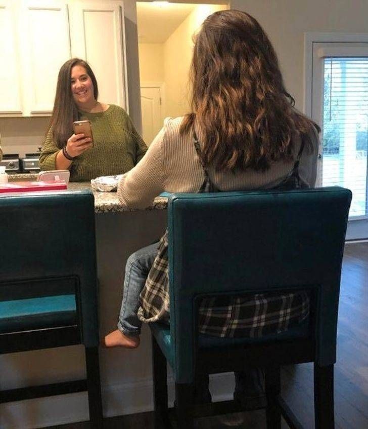 3. Perempuan itu tampak mempunyai kaki kecil, tapi sebenarnya dia sedang memangku anak kecil.