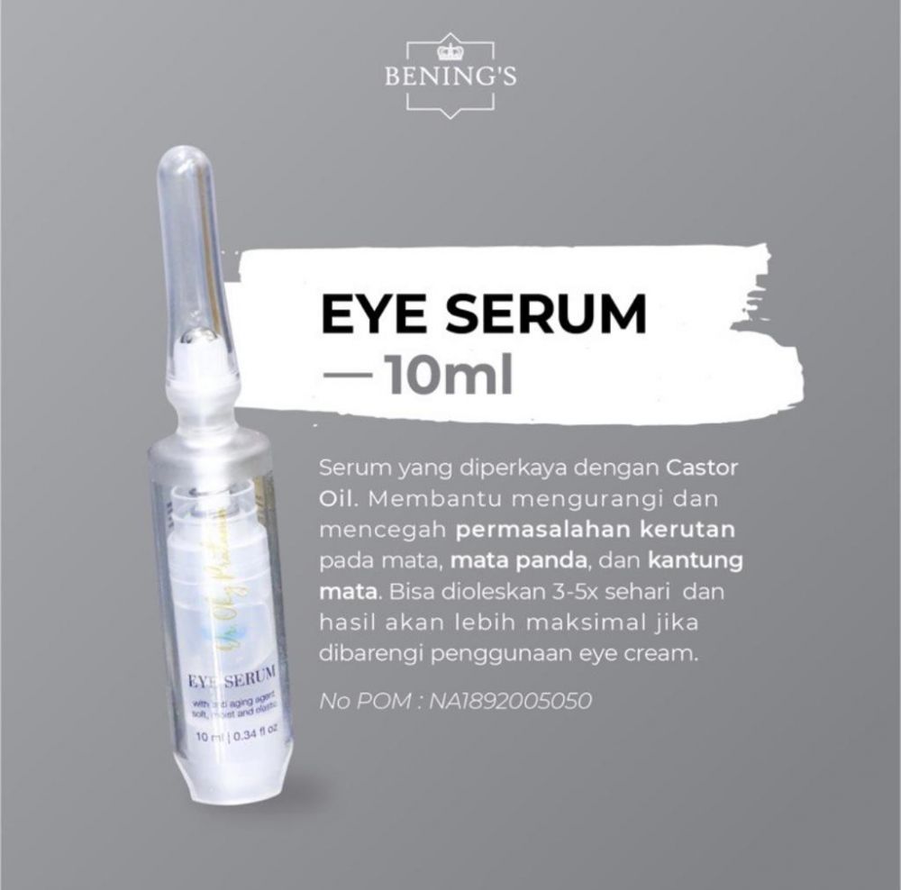 Klinik kecantikan Benings Clinic juga membuat skincare untuk mengatasi permasalahan kulit masyarakat. Salah satunya ada eye serum.