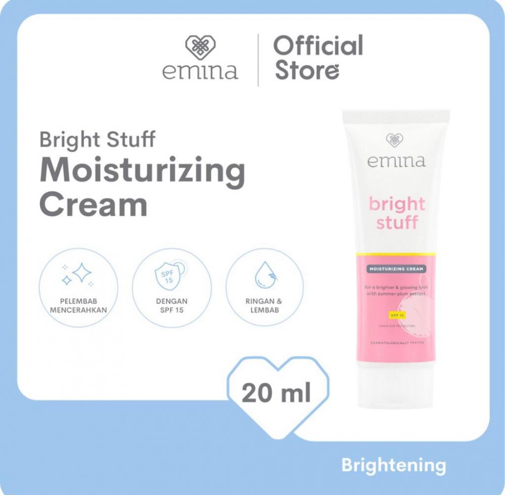 Emina Bright Stuff Moisturizing Cream mengandung ekstrak summer plum, vitamin E dan moisturizing agent yang dapat membantu mencerahkan dan melembapkan wajah. Menggunakan pelembap dengan rangkaian skincare yang benar akan membuat wajah terbebas dari kulit kusam.