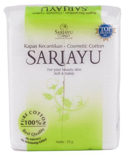 Sariayu Cosmetic Cotton merupakan salah satu merk lokal yang memiliki tekstur lembut serta bebas merkuri dan klorin sehingga aman digunakan setiap hari untuk membersihkan wajah, apalagi yang memiliki kulit sensitif tanpa meninggalkan serat atau serabut kapas di wajah. Sariayu Cosmetic Cotton bisa di dapatkan dengan harga mulai Rp 8 ribu saja.