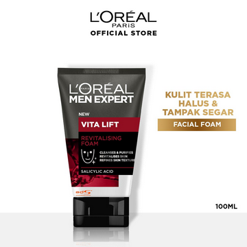Produk cuci muka pria yang pertama yaitu L\'oreal Paris Men Expert Vita Lift. Sabun cuci muka pria yang satu ini memiliki kandungan active defence system (ADS). Kandungan ini berguna menenangkan kulit dan membentuk perlindungan secara alami.