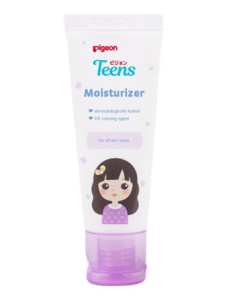 Pigeon Teens Moisturizer dirancang khusus untuk kulit remaja karena formulanya yang ringan, mudah menyerap dalam kulit wajah, serta tidak membuat wajah berminyak. Moisturizer ini mengandung ekstrak jojoba oil membantu menjaga kelembaban kulit dan ekstrak chamomile bisa melindungi kulit dari iritasi ringan.