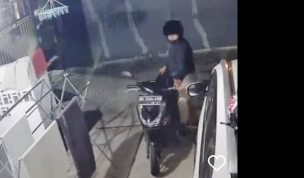 Min Up, tetangga saya kemalingan motor di Tanah Baru Beji tadi subuh jam 04.30. Pelaku dengan mudahnya membuka pintu rumah yang terkunci, tulis seorang netizen, Rabu (31/5/2023).