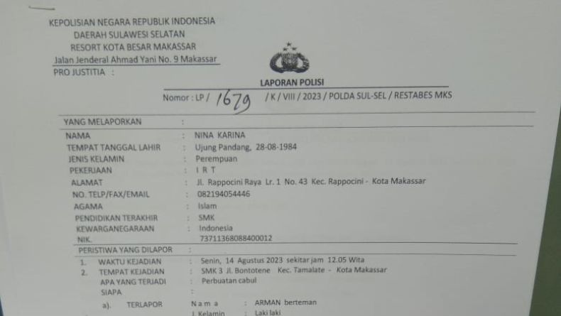 Diduga Dilecehkan Kakak Kelasnya, Siswi SMK di Makassar Lapor Polisi