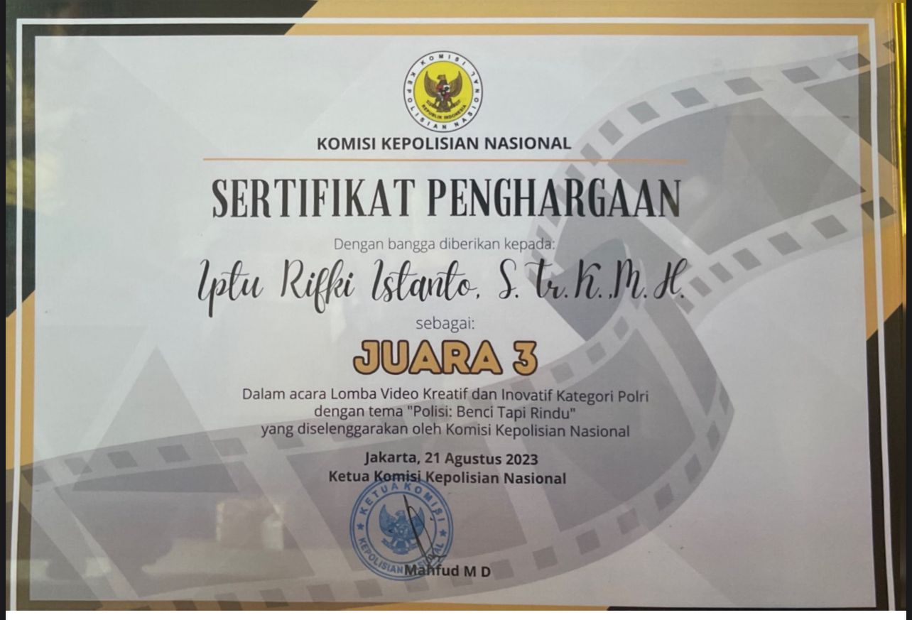 Berkat kerjasama yang baik , video berdurasi 3 menit tersebut berhasil diapresiasi oleh Kompolnas RI yang diketuai Mahfud MD dan berhasil meraih Juara 3 Nasional Kategori Polri.