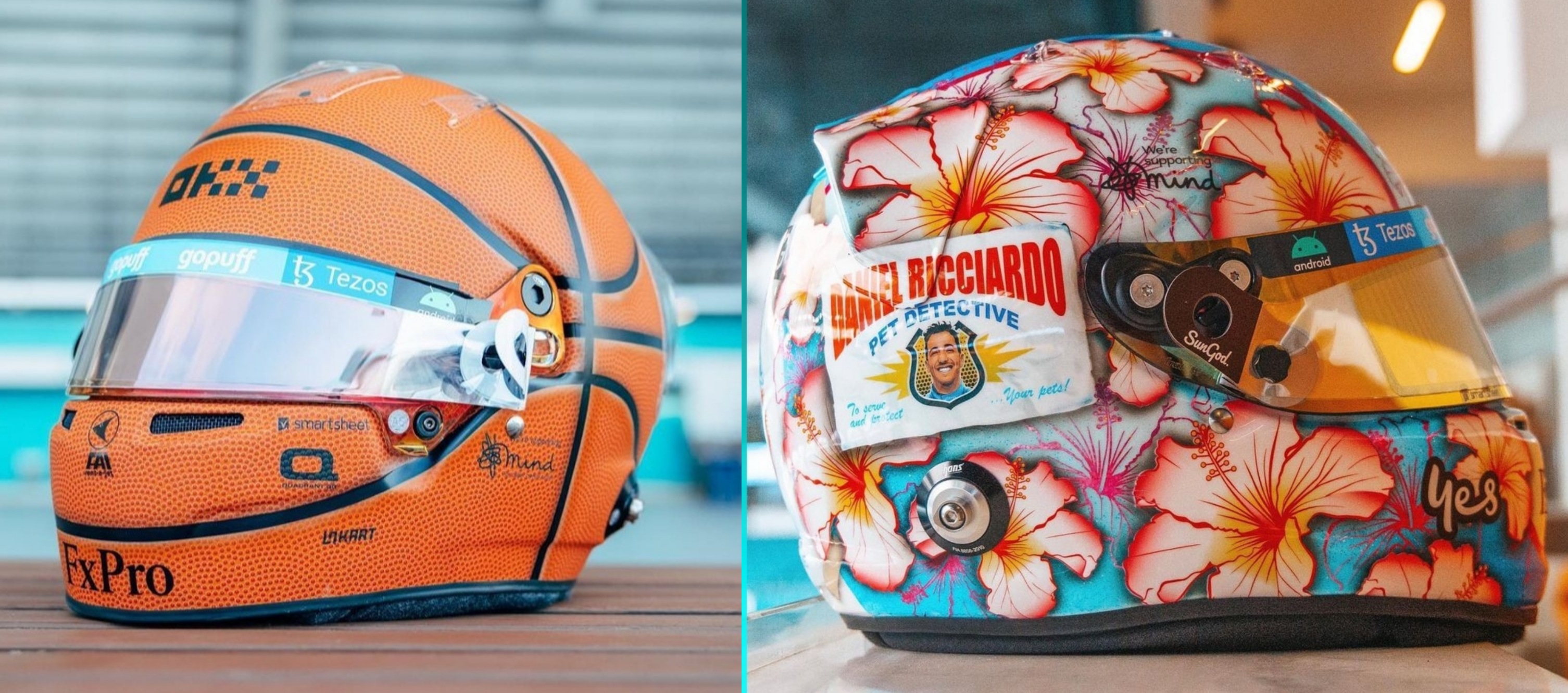 Paling unik mungkin McLaren sebab Lando Norris akan menggunakan desain yang benar-benar menyerupai bola basket. Sementara Daniel Ricciardo, pakai model helm dengan gambar bunga sepatu di sekujur bodi helm sehingga cocok seperti karakter flamboyan pembalap Australia itu. Serta terdapat logo tim American football Miami Dolphin.