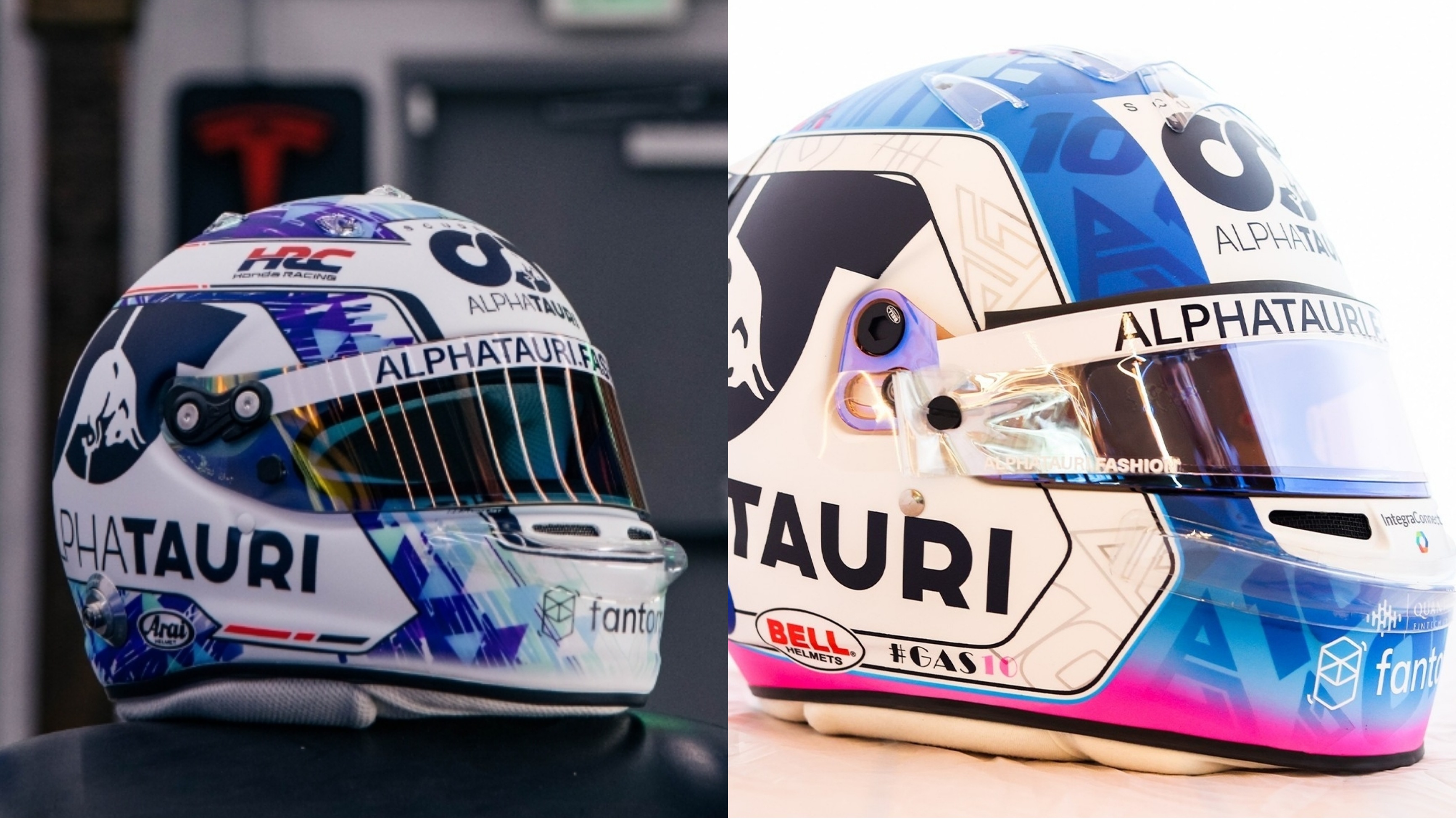 Yuki Tsunoda mendapat hadiah helm dari Remote dengan warna putih dan kombinasi aksen abstrak ciri khas berwarna biru seniman itu. Sementara Pierre Gasly juga memakai helm putih berikut aksen biru, dan merah muda di bagian bawahnya. Lalu terdapat gambar 3D pembalap Prancis itu berpose di depan Honda NSX putih dengan background matahari tenggelam.