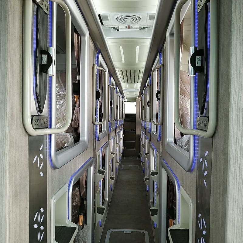 Bus tersebut memiliki total 22 kapsul. Kursi di dalam kapsul dapat melakukan rotasi hingga 150 derajat dan memiliki kursi reclining elektrik yang semakin memudahkan penumpang mengatur posisi duduk mereka.