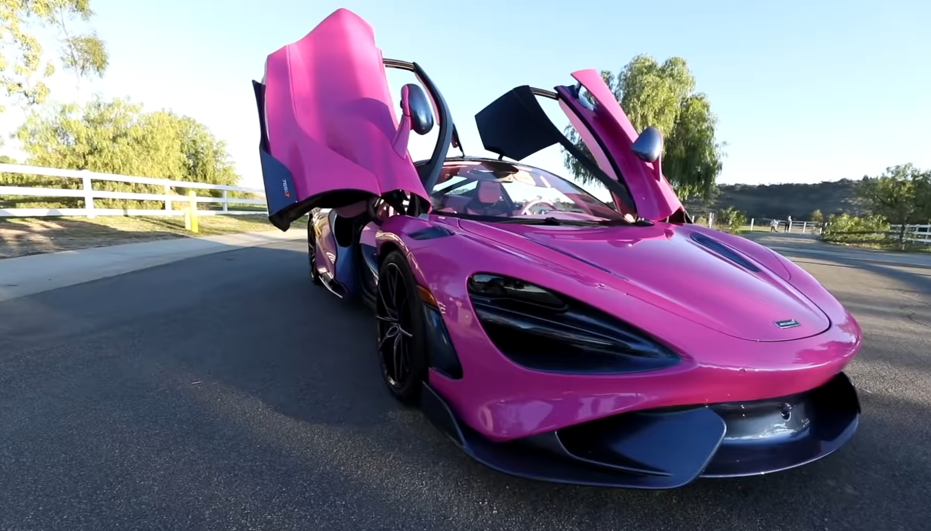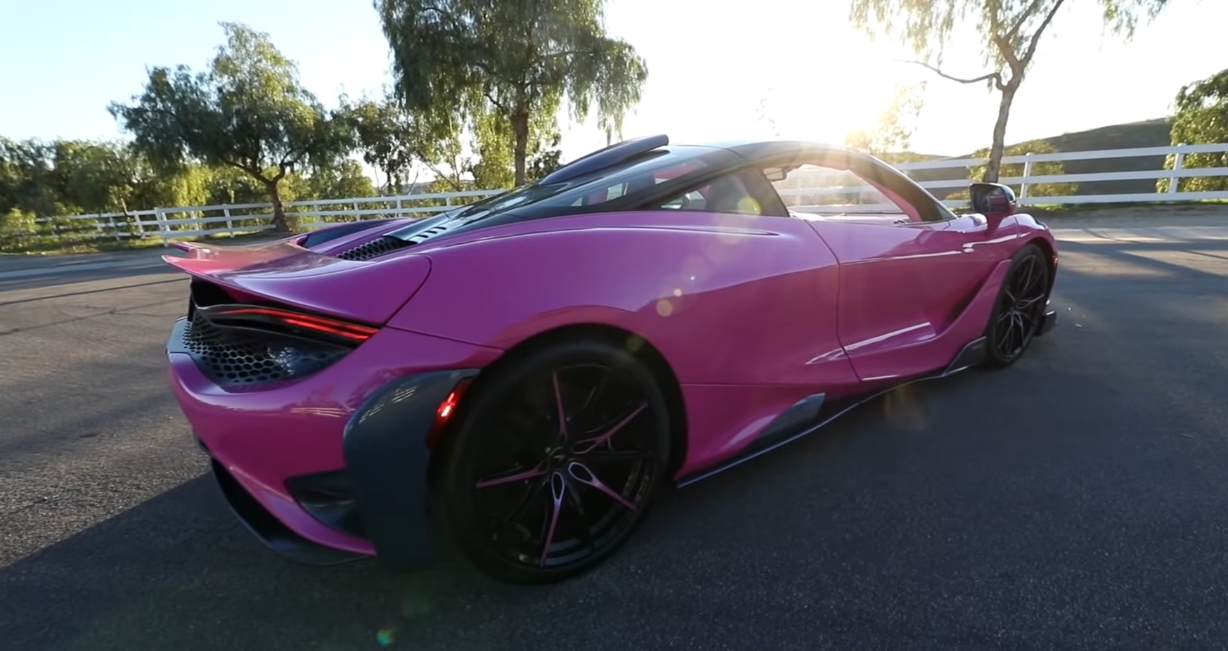 McLaren Special Operations membuat 765LT secara khusus, dengan cat warna Pink Magic yang eksklusif dihiasi serpihan glitter biru dan ungu. Lalu aksen serat karbon di beberapa bagian membuat tampil semakin spesial. Bagian pelek juga dicat hitam menampilkan ada aksen warna merah muda senada bodinya.