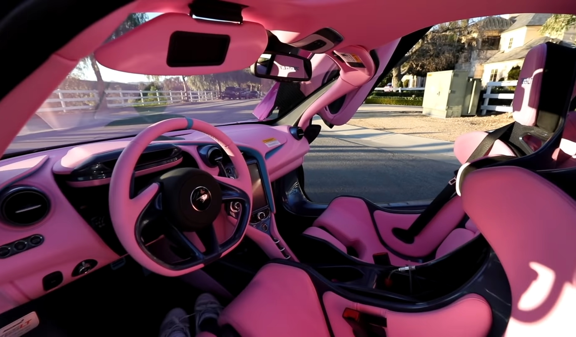 Mengintip interiornya, McLaren juga memberikan warna yang sudah dipilih oleh Jeffree, balutan bahan kulit warna Baby Pink, membalut hampir semua bagian baik jok, dasbor, doortrim, konsol tengah, pilar hingga plafonnya. Beberapa detail panel kristal biru juga dapat ditemukan, bersamaan dengan aksen warna Wonka Blue di beberapa titik seperti bodir di sandaran kepala, doortrim, hingga bagian atas lingkar setir.