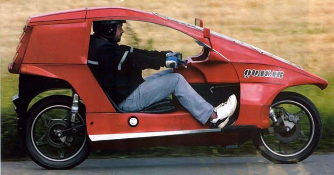 Dilihat dari desainnya, Quasar hanya bisa ditunggangi satu orang. Uniknya motor ini ditunggangi layaknya mobil yang memungkinkan pengemudi bersandar dan meluruskan kaki dan mampu berlari hingga kecepatan 90100 mph atau 145160 km/jam.