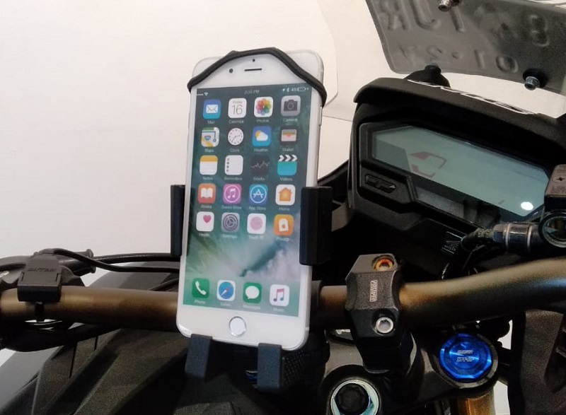 "Phone holder ini bisa dipasangkan dengan cepat, mencopotnya juga mudah. Tahan terhadap getaran dari jalan rusak, karena ada penahannya, sehingga tak akan jatuh, meski melewati jalan rusak," terang Syahril Andriansyah, Commersial Departement PT Shad Indonesia.