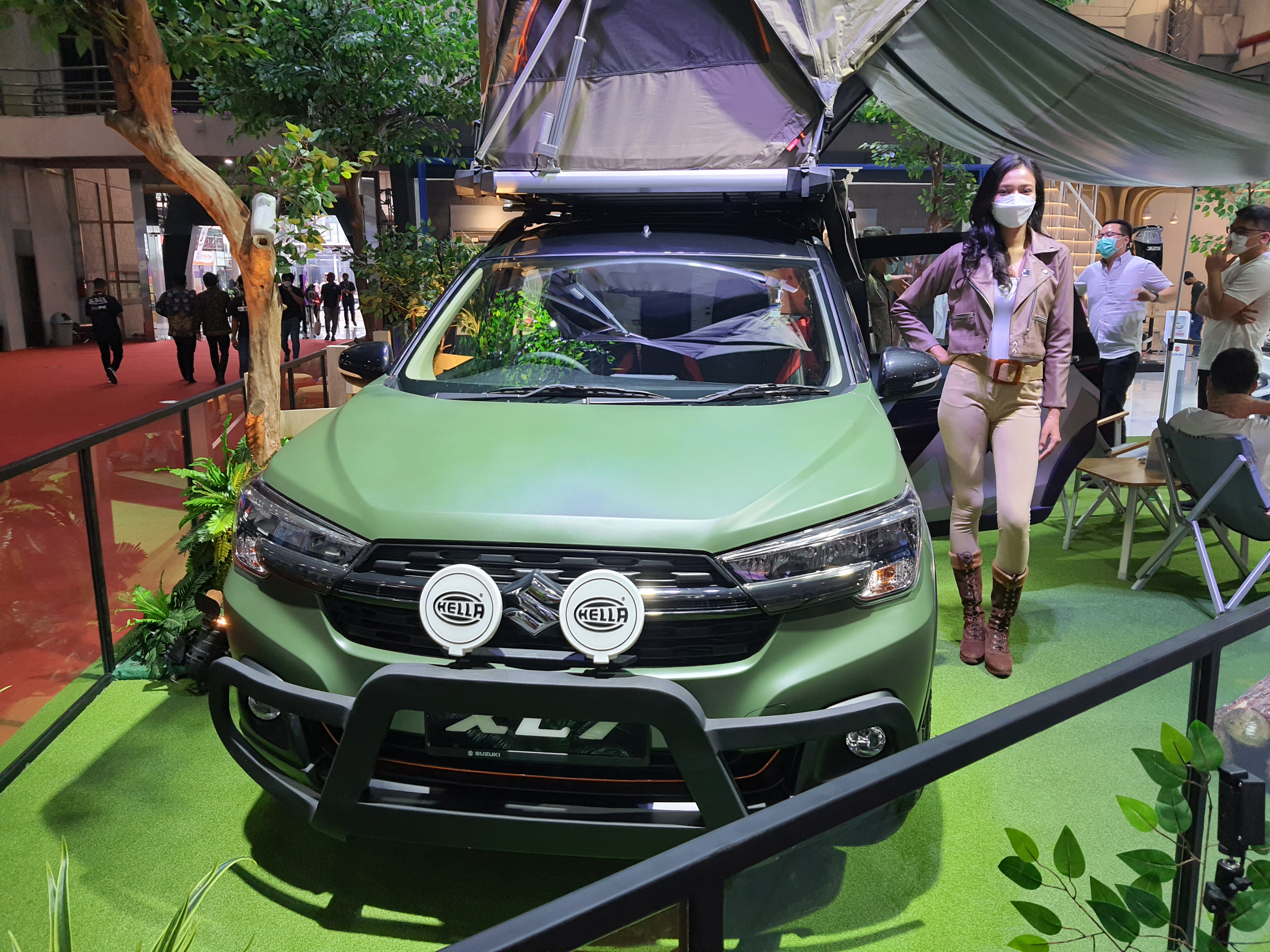 KabarOto.com Booth Suzuki di IIMS 2022 menghadirkan beberapa mobil modifikasi, salah satu yang paling menarik perhatian adalah Suzuki XL7 bergaya Camper Van berkelir hijau di ujung dekat pintu masuk. Bahkan terbilang serius, detail suara kicau burung dan aroma hutan turut dihadirkan memberikan pengalaman berpetualang.