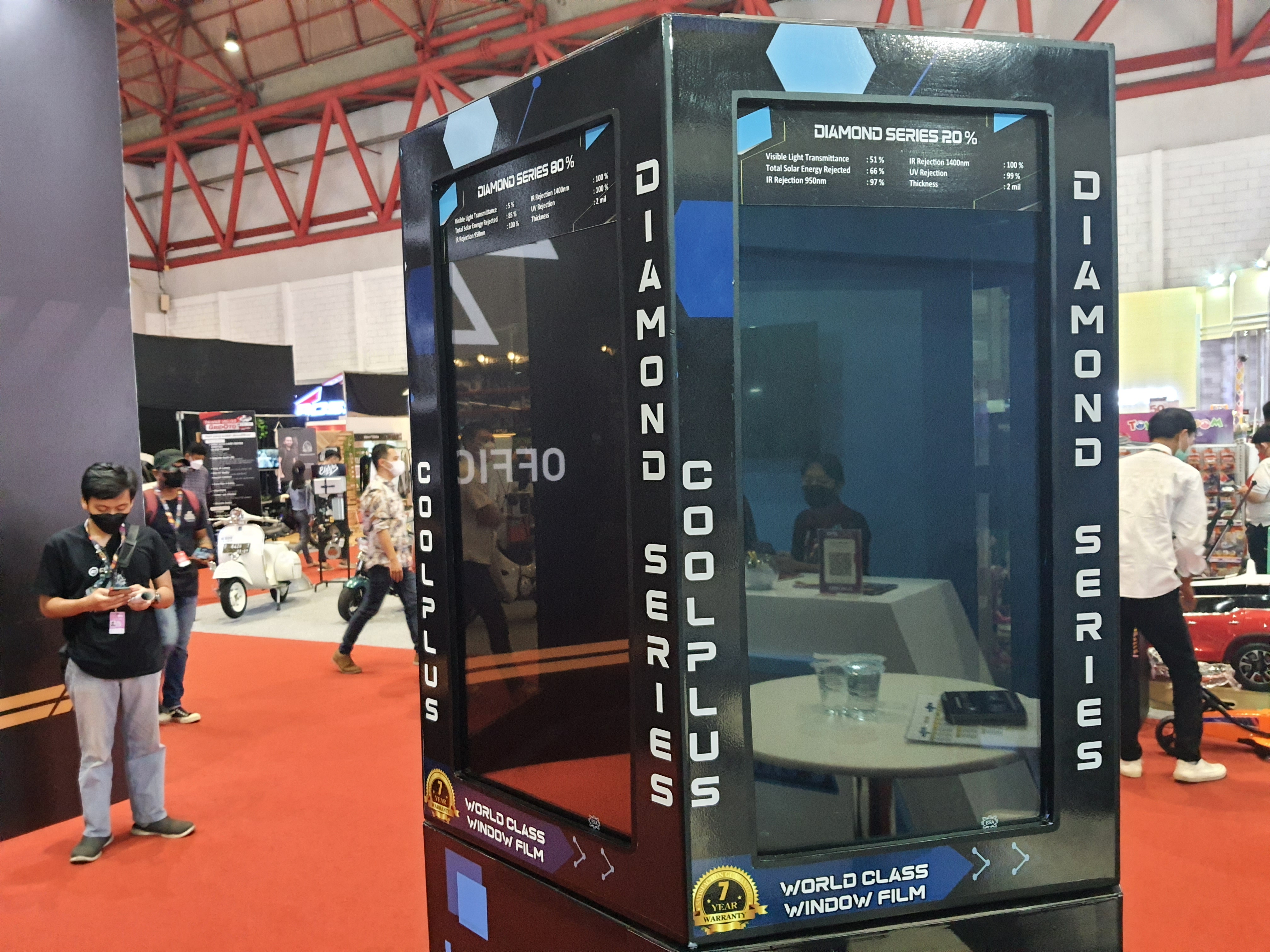 KabarOto.com Kaca film CoolPlus hadir di IIMS 2022, mereka menawarkan produk berkualitas dengan harga terjangkau. Daya tolak panasnya juga tinggi sehingga cocok untuk cuaca panas seperti di Indonesia. Disediakan empat tipe di antaranya Black, Pro, UV400 dan Diamond Series.