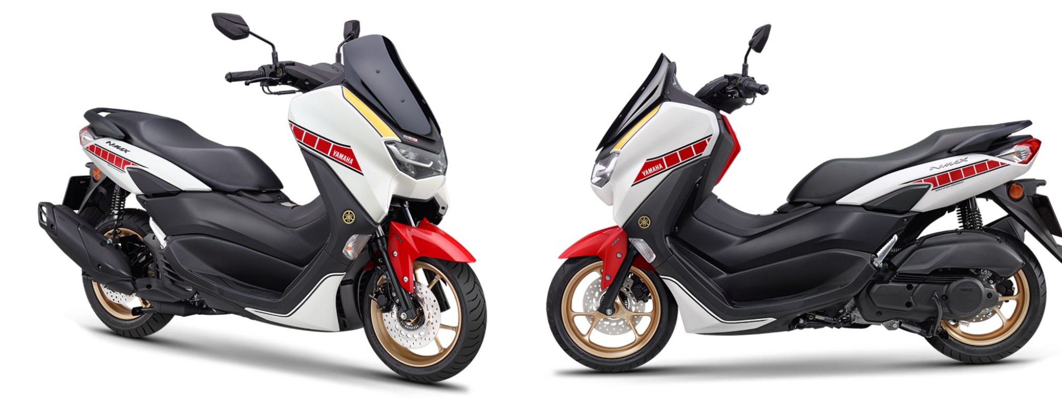 Dari tampilan eksteriornya, NMax ini hadir dengan warna dasar putih, aksen merah di bagian sepatbor depan, fairing, dan bodi samping. Berikut aksen kuning di samping wind shield sebagai identitas. Uniknya, motor ini akan sangat langka sebab hanya diproduksi 120 unit.