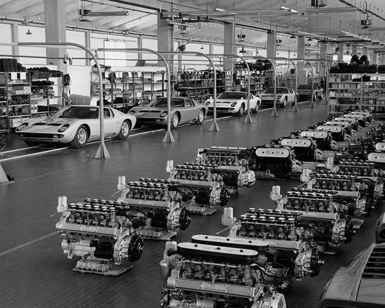 Lalu Miura P400 pada 1968 merupakan nama teman dekat Ferrucio, Eduardo Miura yang berternak banteng. Mobil ini mendapat julukan The Original Supercar karena konfigurasi mesin tengahnya, dan memiliki penggerak roda belakang. 338 unit berhasil dibuat hingga 1971, memiliki kecepatan tertinggi 285 kpj dan akselerasi 6,5 detik.