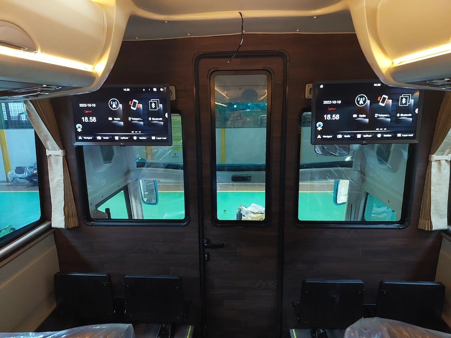 Untuk fasilitas di dalamnya, terdapat tiga buah TV berukuran besar, dua di bagian depan dan satu di tengah. Terdapat juga toilet pada area belakang bus yang dapat digunakan untuk buang air kecil pada saat bus sedang berjalan.