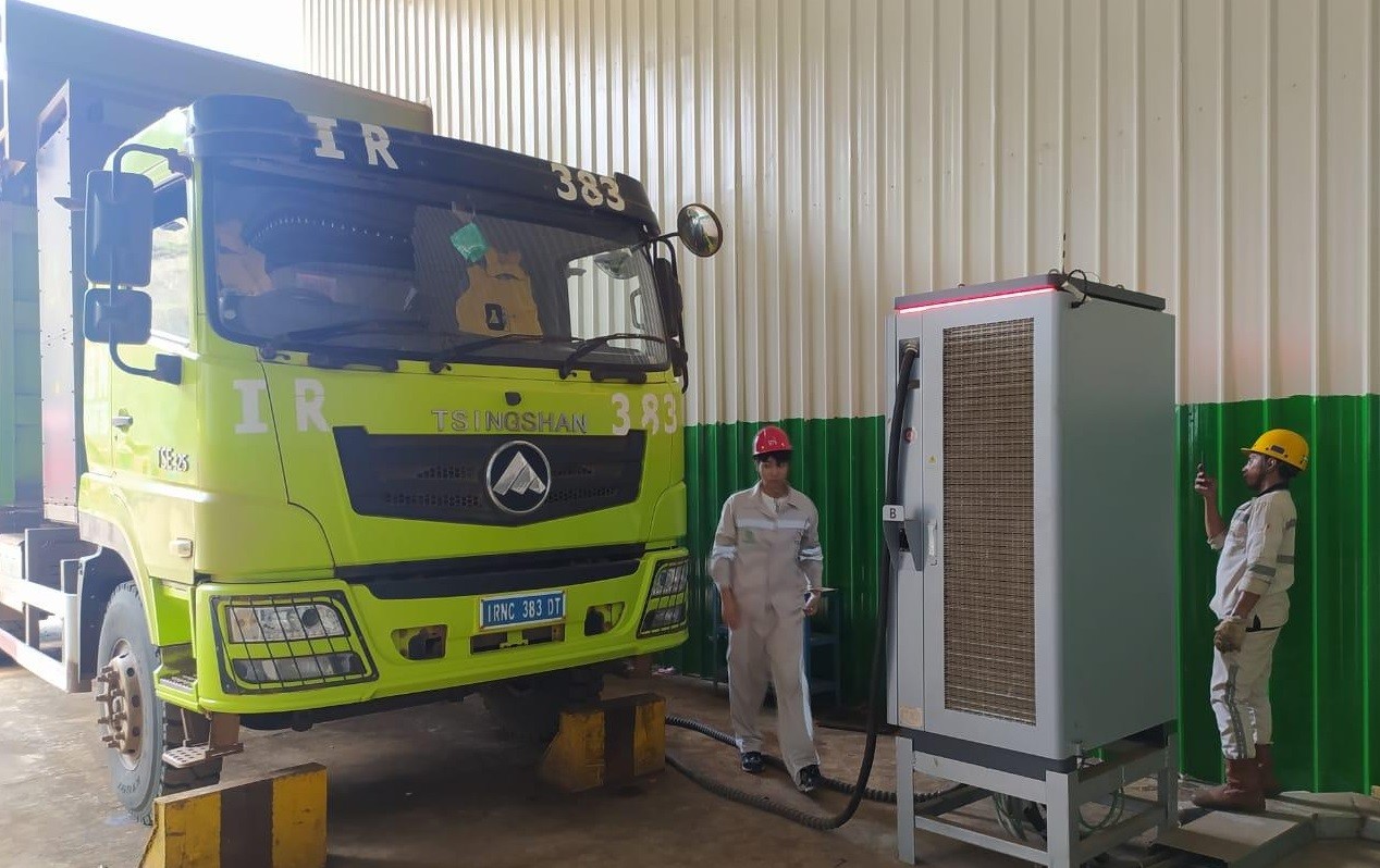 Ya, revolusi datang dari truk-truk warna hijau terang yang hilir mudik saban hari di IMIP. Bukan sembarang praoto . Kendaraan tersebut adalah truk listrik. Tepatnya, truk listrik Tsingshan buatan China.