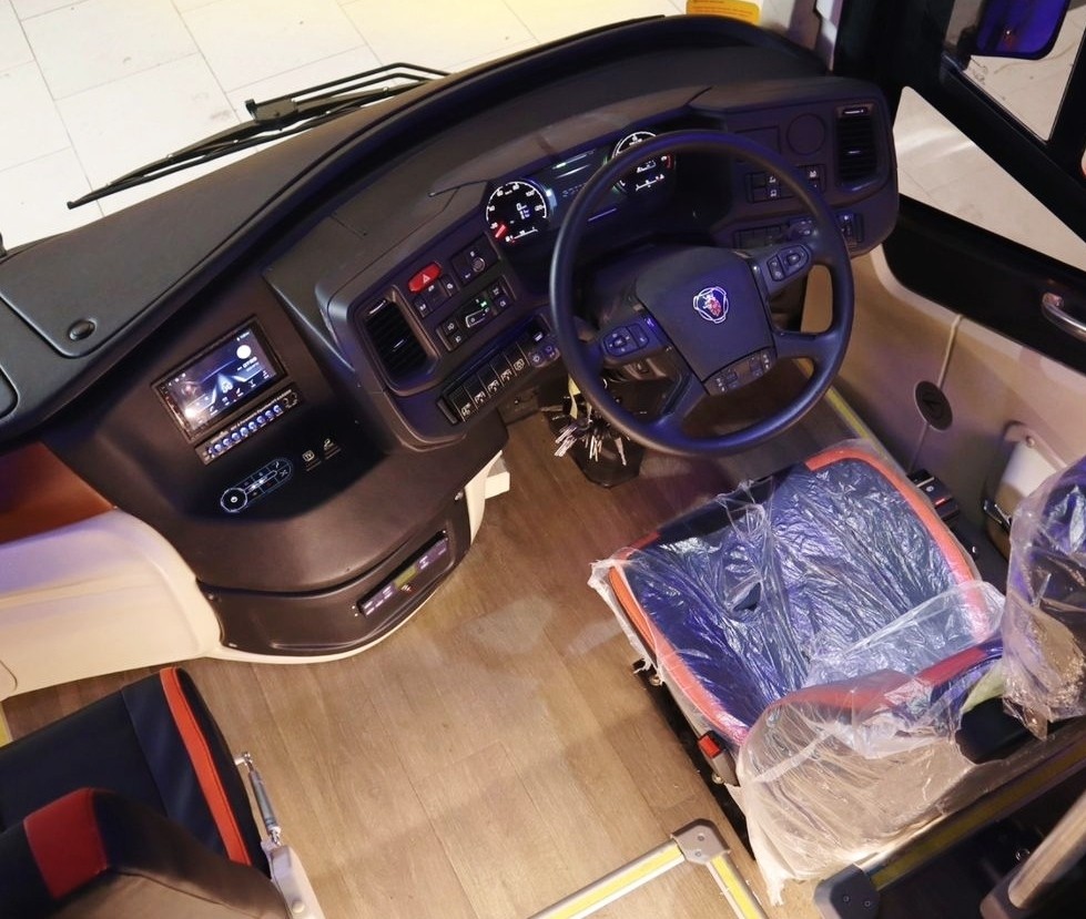 Jantung pacu tersebut dapat menghasilkan tenaga maksimal 301 kW (410 hp) pada 1.900 rpm dan torsi puncak 2.000 Nm pada 1.000-1.350 rpm. Sebagai penyalur tenaga dari mesin ke roda belakang, digunakan sistem transmisi GR875R, 8-percepatan Scania Opticruise with kick-down. Bus ini juga dilengkapi fungsi retarder, yang bisa disetel otomatis maupun manual.
