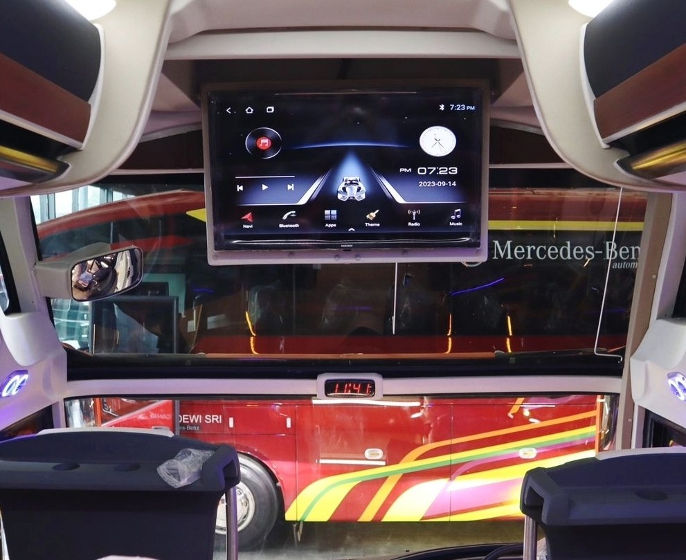 Penumpang juga bisa mengisi daya melalui USB yang terdapat pada setiap louver AC di bagian atas. Tersedia juga televisi berukuran besar di bagian depan untuk kebutuhan entertainment dan toilet yang berada di tengah.