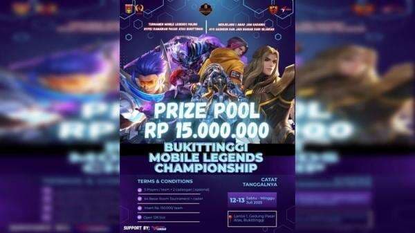 Bertajuk Bukittinggi Mobile Legends Championship, ajang ini akan digelar di Gedung Pasar Atas lantai 1 dan melibatkan 128 tim peserta dari Sumatera Barat, Riau, hingga Jambi.