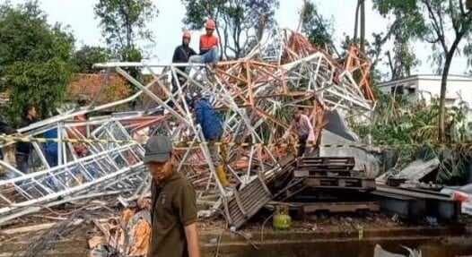 Angin puting beliung Terjang Cikarang, Sejumlah Bangunan Rusak dan Satu Tower BTS Roboh