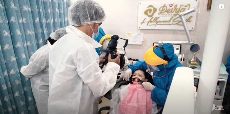 1. Bersama keluarganya, Arsy mendatangi klinik gigi langganan keluarganya. Menurut keterangan Ashanty, mereka sekeluarga sudah sangat percaya dengan dokter gigi di sana.