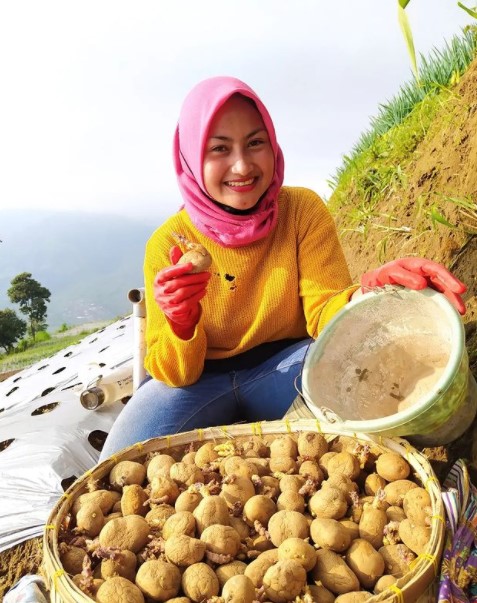 "Saya itu belajar bertani dari suami saya, diajarin. Terus cara menanamnya itu kayak gini. Terus merawat tanaman seperti ngobat, ngobat tanaman itu, kayak gini," lanjutnya.