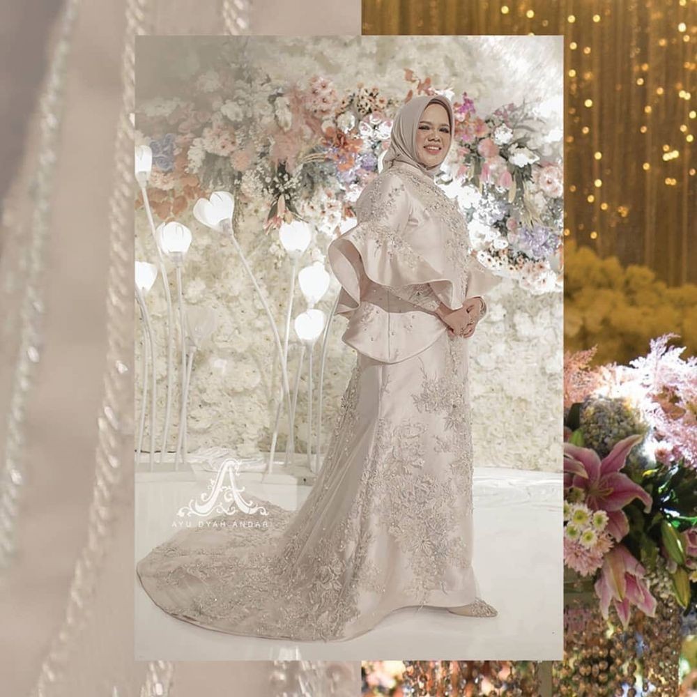 9. Penampilan ibunda Tasya Farasya, Ala Alatas di pernikahan putrinya turut disorot. Ia tampil cantik dengan gaun model mermaid brokat warna soft grey.