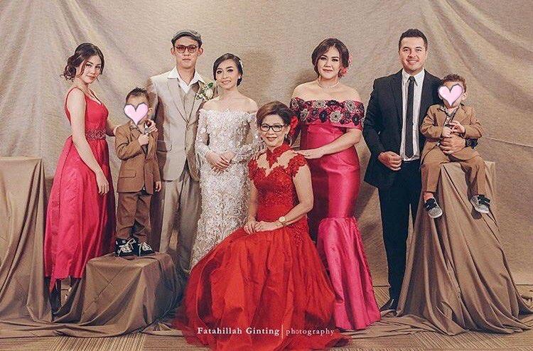 8. Di pernikahan sang putra Jevin Julian dengan Rinni Wulandari, Farida Hanas tampil glamor dengan dress nuansa merah. Tampilannya semakin menawan dengan tambahan bunga mawar di sanggulnya.